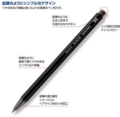 ノック部分のアイコンカラーで芯径を識別できるようになっています。