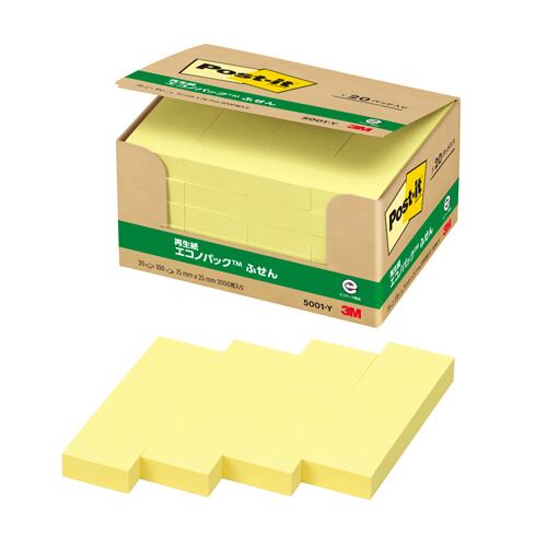 3M スリーエム ポストイット 再生紙ふせん イエロー 5001-Y