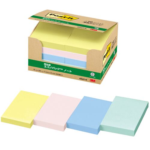 3M スリーエム ポストイット 再生紙ノート 混色 6561-K