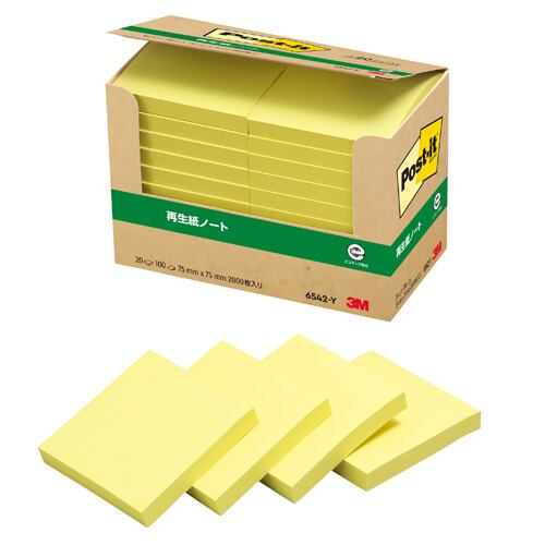 3M スリーエム ポストイット 再生紙経費削減 イエロー 6542-Y縦75×横75mm枚数100×20パッド