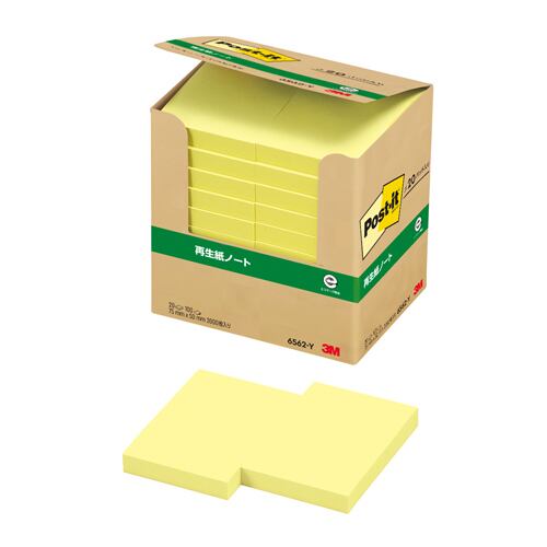 3M スリーエム ポストイット 再生紙経費削減 イエロー 6562-Y縦75×横50mm枚数100×20パッド