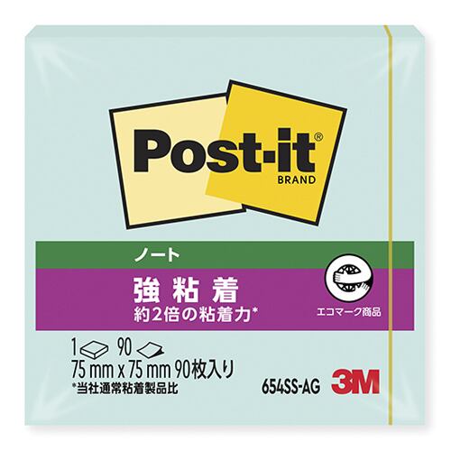 3M スリーエム ポストイット 強粘着アップルグリーン 654SS-AG縦75×横75mm枚数90×パッド数1