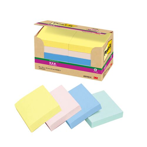 3M スリーエム ポストイット 強粘着ノートパステル4色 6501SS-K粘着力が約2倍の強粘着製品のオフィスになじむパステルカラー。強力な粘着力で樹脂などの紙以外にもしっかり貼れます!たっぷり使えてお得なエコノパック。サイズ:縦50×横50mm入数:90枚×10パッド