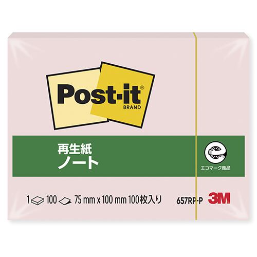 3M スリーエム ポストイット 再生紙ノート ピンク 657RP-P縦75×横100mm枚数100×1パッド