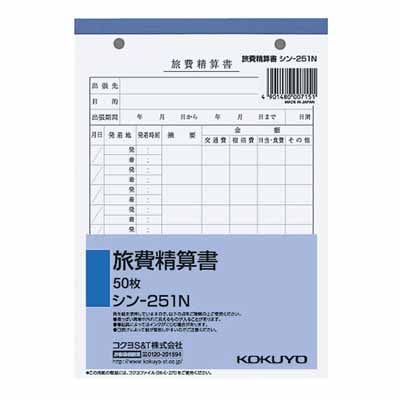 コクヨ 旅費精算書 B6縦 2穴 50枚 シン-251N