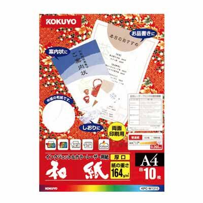 コクヨ カラーレーザー&IJP用紙 和紙 厚口両面印刷用 A4 10枚入 KPC-W1310