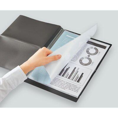 必要な時にはA4サイズに広げてパラパラと閲覧できるクリヤーブックです。