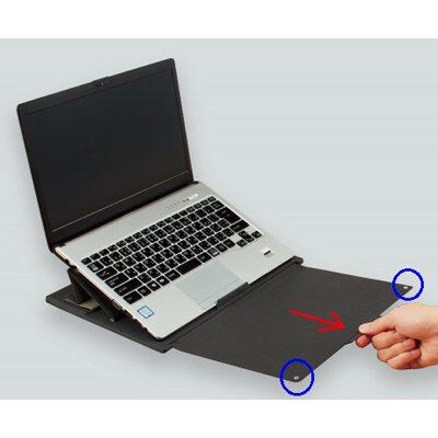 ●スライドボードを折り返すことで、キーボードに干渉しにくいノート筆記台となり、