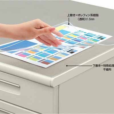●環境に配慮し、非塩ビ素材(オレフィン系樹脂)を採用したデスクマット。再生オレフィンタイプに比べ廉価で、塩ビタイプと同等の価格なので、より環境負荷の少ないタイプとして塩ビタイプからの買い替えに最適です。透明でマットに挟んだ書類が見やすく、またコピーのインキなども付着しにくい両面非転写タイプです。グレー色の下敷きが付属しています。