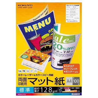 コクヨ カラーレーザー&カラーコピー用紙 両面印刷用マット紙 標準A4 100枚 LBP-F1210