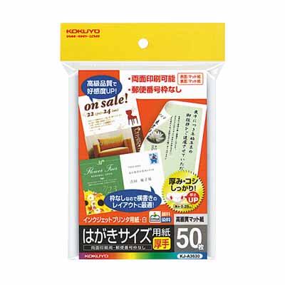 コクヨ インクジェットプリンタ用はがき用紙 マット紙 郵便番号枠無し 50枚入 KJ-A3630