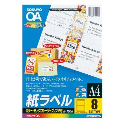 コクヨ レーザープリンタ用ラベル LBP-F7165-100NLBP用紙ラベル(カラー&モノクロ対応) A4 100枚入 8面カット