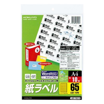 コクヨ レーザープリンタ用ラベル LBP-7651Nモノクロレーザー用紙ラベル A4 10枚入 65面カット