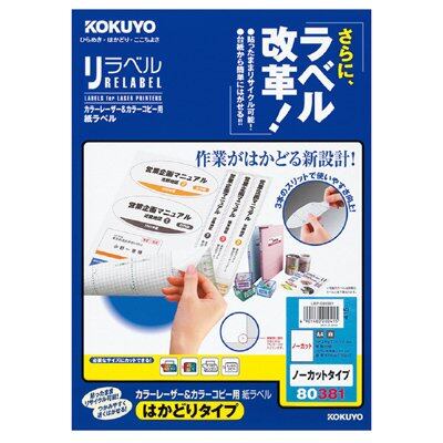 コクヨ レーザープリンタ用ラベル LBP-E80381カラーLBP&コピー用紙ラベル リラベル ノーカット 20枚入