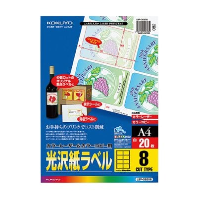 コクヨ レーザープリンタ用ラベル LBP-G6908カラーLBP&コピー用光沢紙ラベル A4 20枚入 8面カット
