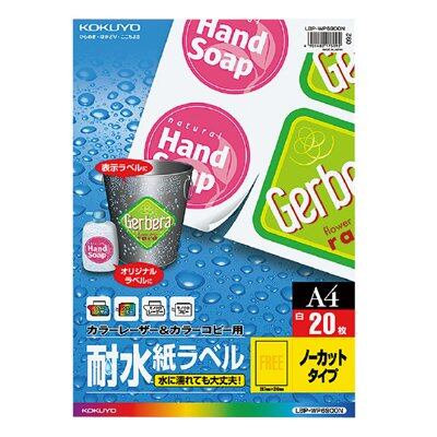 コクヨ レーザープリンタ用ラベル LBP-WP6900NカラーLBP&コピー用耐水紙ラベル A4 20枚入 ノーカット