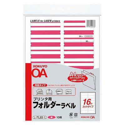 コクヨ レーザープリンタ用ラベル L-FL85-1プリンタ用フォルダーラベル A4個別フォルダー用 10枚入 赤