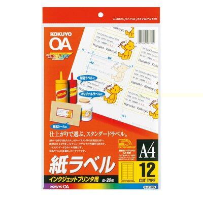 コクヨ インクジェットプリンタ用ラベル KJ-2162インクジェットプリンタ用紙ラベル A4 12面 20枚