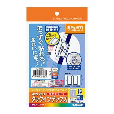 コクヨ インクジェットプリンタ用ラベル KJ-6065Bインクジェット用インデックス紙ラベル ハガキサイズ10枚入 16面カット 青枠