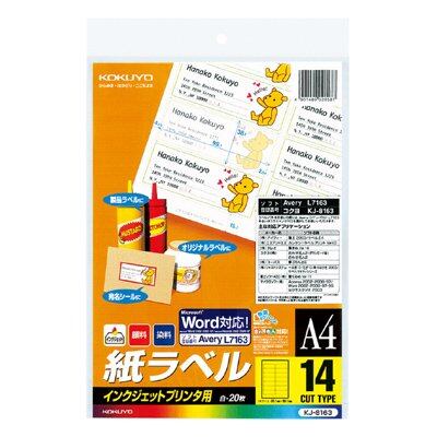 コクヨ インクジェットプリンタ用ラベル KJ-8163インクジェットプリンタ用紙ラベル A4 14面カット