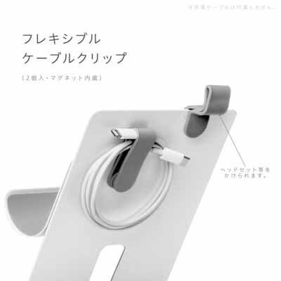ケーブルクリップで充電ケーブル類をまとめ、マグネットで本体に固定することができる。