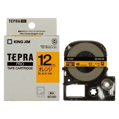 テプラPROテープカートリッジ (パステル) オレンジに黒文字12mm幅 SC12D