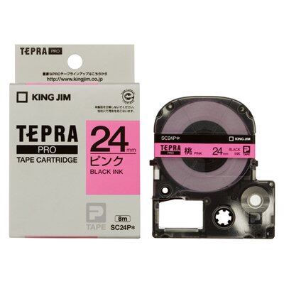 テプラPROテープカートリッジ (パステル) ピンクに黒文字 24mm幅 SC24P