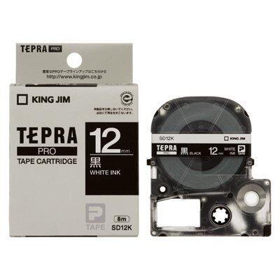 テプラPROテープカートリッジ (ビビッド) 黒に白文字12mm幅×8m SD12K
