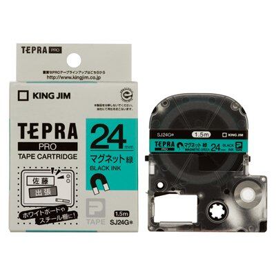 テプラPROテープカートリッジ マグネットテープ 緑に黒文字 24mm幅 SJ24G
