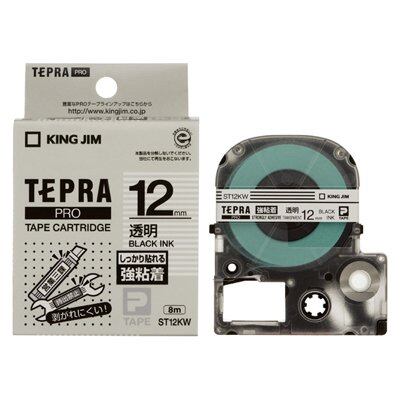 テプラPROテープカートリッジ 強粘着ラベル透明に黒文字12mm幅×8m ST12KW
