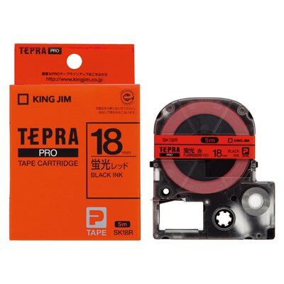 テプラPROテープカートリッジ (蛍光色) レッドに黒文字 18mm幅 SK18R