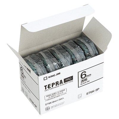 テプラPROテープカートリッジ 5個入り 透明に黒文字 6mm幅×8m ST6K-5P