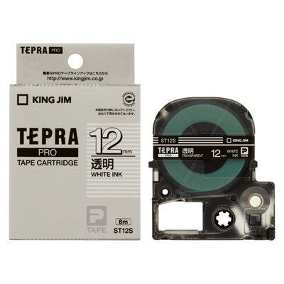 テプラPROテープカートリッジ 透明ラベル 透明に白文字12mm幅×8m ST12S