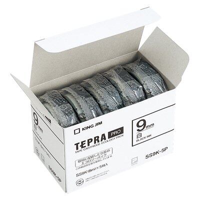 テプラPROテープカートリッジ 5個入り 白に黒文字 9mm幅×8m SS9K-5P