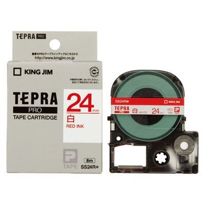 テプラPROテープカートリッジ 白ラベル 白に赤文字 24mm幅×8m SS24R