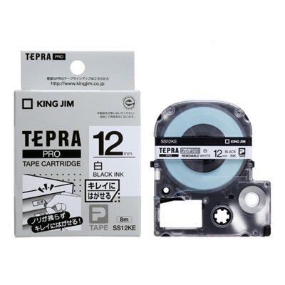 テプラPROテープカートリッジ キレイにはがせる 白に黒文字 12mm幅 SS12KE