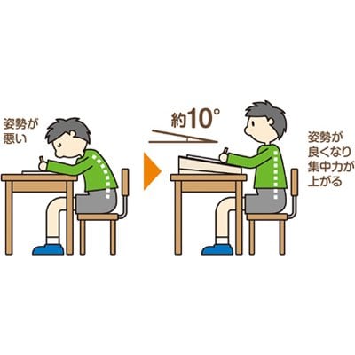約10度の傾斜設計で正しい姿勢を保つ! 疲れにくくなるので集中力もUP!