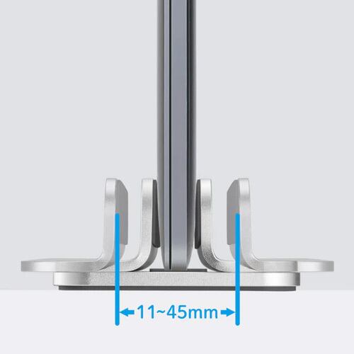 付属のレンチを使用することで、スタンド部は11~45mmの幅で無段階に調整できます。